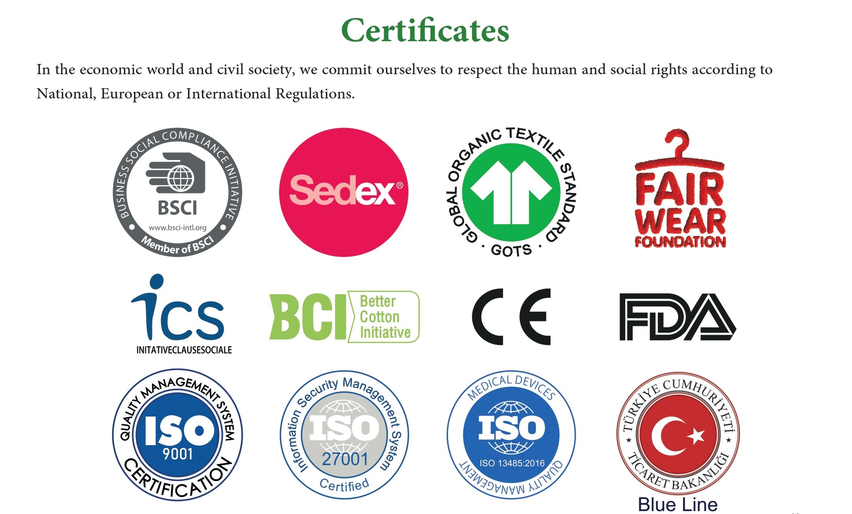 Aykatex Fashion, fully complies with its social responsibilities, workers health and work safety, in line with statutory requirements and standards that are generally accepted in the international community.